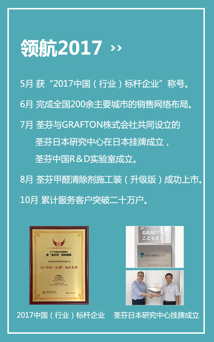 荃芬人不忘初心,始終牢記為中國家庭“荃力除甲醛”的使命,相信,荃芬人譜寫的“未來篇章”,將更加耀眼、輝煌!
