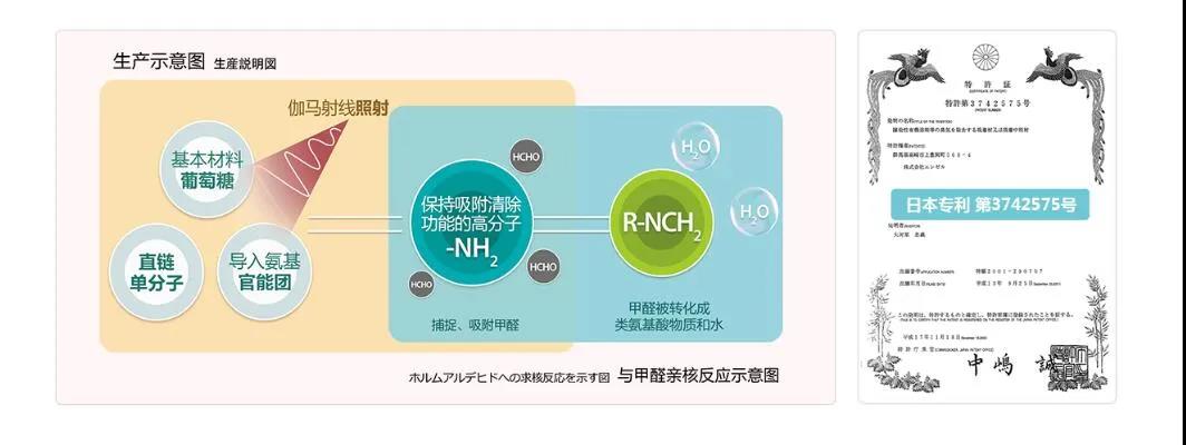 對于荃芬除甲醛的認識,他總結:第一個優勢就是“長效”,產品有效性可持續19年(根據日本環境研究株式會社的實驗報告顯示)。日本GRAFTON株式會社原液進口,產品原料是以葡萄糖為主,經過伽馬射線照射生成穩定的氨基高分子聚合物,捕捉、吸附空氣中的甲醛,并與其反應生成類氨基酸物質與水,不產生任何有害物質,安全性通過日本生物科學中心檢測,除醛反應技術取得日本國專利(專利第3742575號)。再次是高效,經日本環境研究株式會社測試:1g可高效清除30.1mg甲醛。