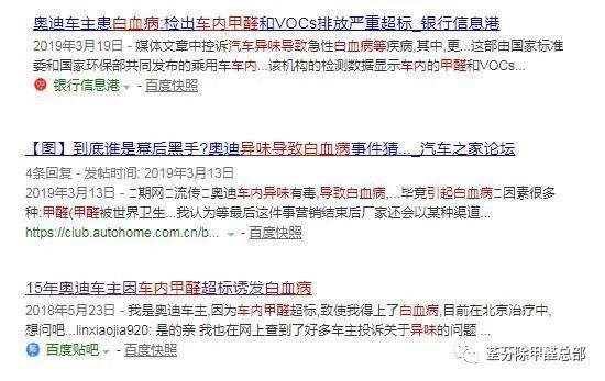 隨后,在2019年3·15上也曝出多家品牌汽車涉及甲醛超標問題。