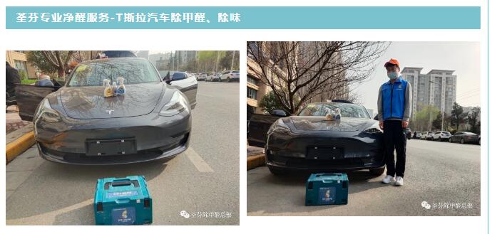 西安肖女士2021年購買一輛T斯拉汽車。在購買汽車時,為了安全性能,購買了進口汽車T斯拉,汽車的自動駕駛、電池續(xù)航都比較滿意,但新車的刺鼻味道,令其很不舒服,經(jīng)了解甲醛可降低身體抵抗力,嚴重影響健康。為了家人和孩子考慮,肖女士選擇荃芬除甲醛,為愛車除甲醛、除味。